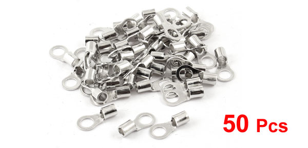 50 Pcs 3mm Diameter Hole Non Insulated Ring Terminal Silver Tone
