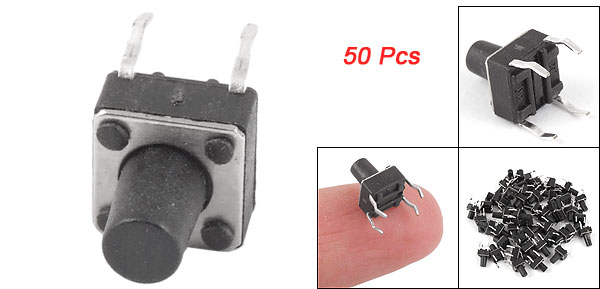 Product Name Micro Switch Type Momentary Contact Quantity 50 ± 2% Pcs Button Diameter 3 x 7mm/ 0.12" x 0.27"(D*H) Dimension 6 x 6 x 8mm/ 0.23" x 0.23" x 0.31" (L*W*T) Material Plastic, Electric Parts Color Black, Silver Tone Net Weight 15g Package Content 50 x Micro Switch - Reviews