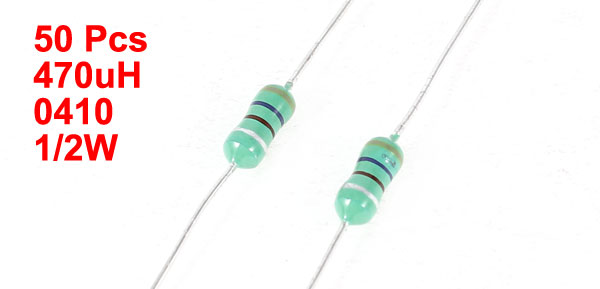 50 Pcs 470UH Inductance 1/2 Watt 0.5Watt 10% Tolerance 0410 Color Ring Inductors