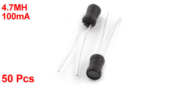 Product Name Radial Inductor Inductance 4.7mH Rating Current 100mA Tolerance 10% Body Size 5 x 6mm / 0.2" x 0.24"(D*H) Pin Size 0.5 x 21mm/ 0.2" x 0.83"(D*L) Lead Distance 2mm / 0.08" Color Black, Silver Tone Weight 25g Package Content 50 Pcs(±2%) x Radial Inductor - Reviews