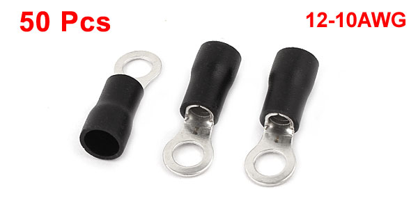 50 Pcs 5.5-5S Insulated Wire Connector Ring Crimp Terminal Black 12-10AWG