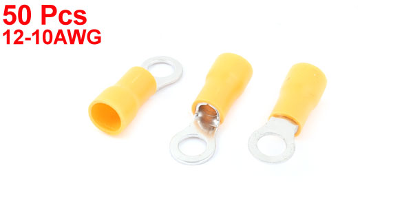 50 Pcs 5.5-5S Insulated Wire Connector Ring Crimp Terminal Yellow 12-10AWG