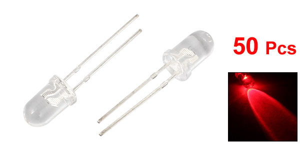 50 Pcs 5mm Dia Round Head 2 Pin Red Light Emitting Diode LED Bulb Lamp White