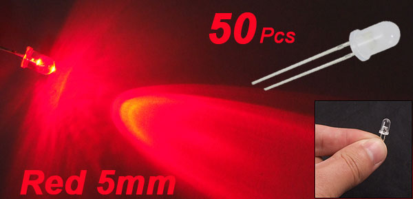 50 Pcs 5mm Diameter Round Head Red LED Light Emitting Diodes