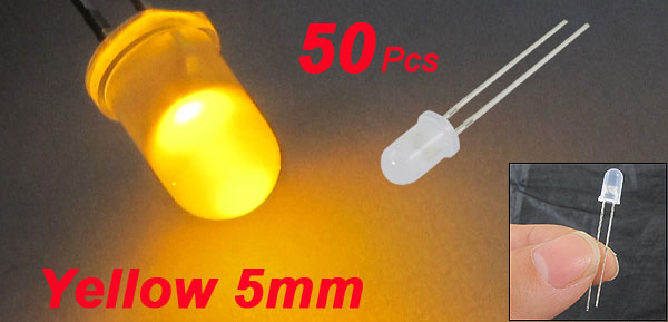 Product Name Emitting Diode Voltage 3V Emitting Light Color Yellow Head Diameter 5mm Size(Approx) 5 x 36mm/ 0.2" x 1.4" (D*L) Material Metal, Plastic Main Color White Weight 16g Package Content 50(±2%) x Emitting Diode - Reviews