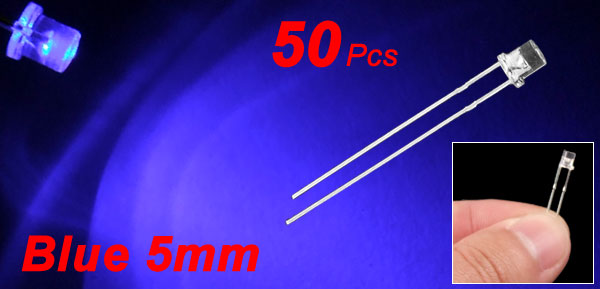 50 Pcs 5mm Flat Head 2 Pins Blue LED Emitting Diodes