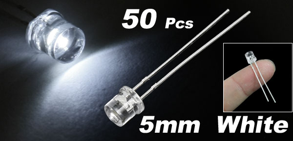 50 Pcs 5mm Flat Head White LED Emitting Diodes 3-3.2V