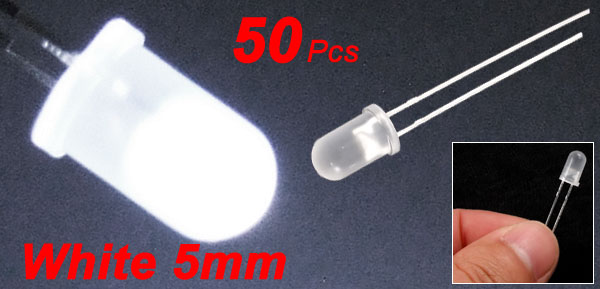 50 Pcs 5mm Round White LED Light Emitting Diode Lamps