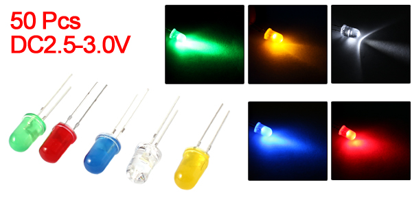 50 Pcs 5mm Straw Hat Red Green Yellow White Blue LED Bulbs Emitting Diodes
