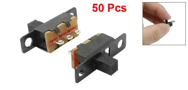 Product Name Slide Switch Contact Type ON/OFF, 2 Positions Terminals Quantity 3 Working Power 0.5A 50V DC Contact Resistance 30mΩ Max Insulation Resistance 100mΩ Min at 500V DC Withstand Voltage AC 500V for 1 min Terminals Size(Each One) 4 x 1.6mm/ 0.16" x 0.06" ( L * W) Switch Total Size 2.3 x 0.75 x 1.7cm/ 0.9" x 0.3" x 0.7"(L * W* H) Knob Size 5.5 x 4 x 6mm/ 0.22" x 0.16" x 0.24" (L * W * H) Material(External) Plastic, Metal Main Color Black Weight 41g Package Content 50(+/-2%) x Slide Switch - Reviews