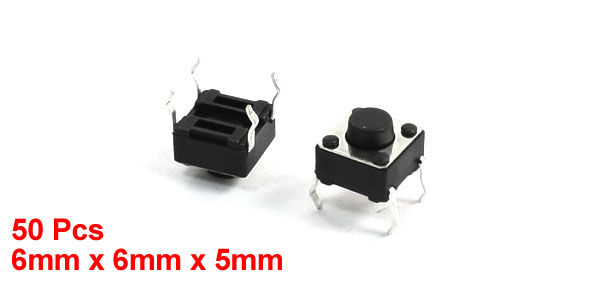 50 Pcs 6 x 6 x 5mm 4 Pins PCB Momentary Control Push Button Tact Switch