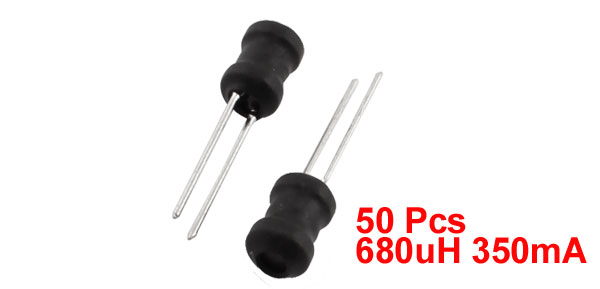 Product Name Radial Lead Inductor Inductance 680uH Rating Current 350mA Tolerance 10% Body Size 5 x 7mm / 0.2" x 0.28"(D*H) Pin Size 0.5 x 14mm/ 0.2" x 0.55"(D*L) Lead Distance 2mm / 0.08" Color Black, Silver Tone Weight 29g Package Content 50(±2%) x Radial Lead Inductor - Reviews