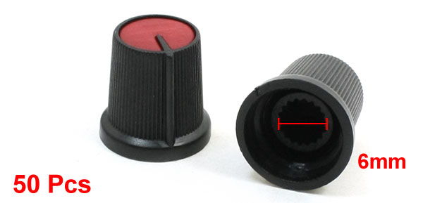 50 Pcs 6mm 15/64" Shaft Dia. Nonslip Potentiometer Knobs Red Black