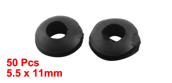 50 PCS Black 5.5mm x 11mm Rubber Wired Grommets Gasket Ring Cable Protector