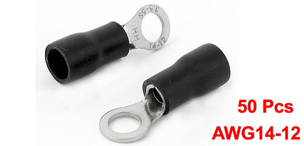 50 Pcs Black Plastic Sleeve Insulated Ring Terminals Connectors AWG14-12