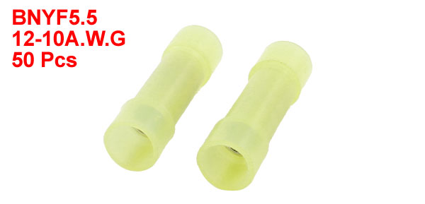 50 Pcs BNYF5.5 Yellow Insulation Straight Butt Connector for 12-10AWG Cable