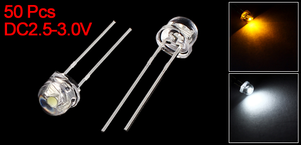 50 Pcs Clear Straw Hat 5mm Yellow White LED Lamp Light Emitting Diodes DC 2.5-3V