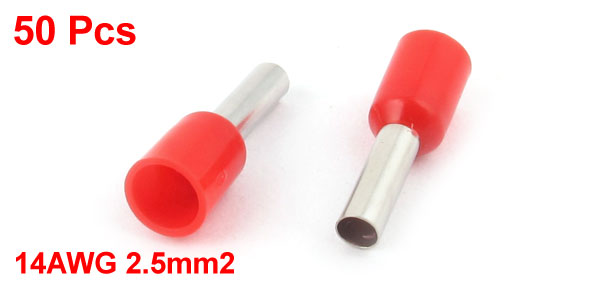 50 Pcs Crimp Cord End Terminal Insulated Bootlace Ferrule Red E2508 14AWG 2.5mm2