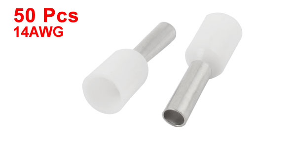 50 Pcs Crimp Cord End Terminal Insulated Bootlace Ferrule White E2508 14AWG