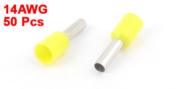 Product Name Insulated Ferrule Model E2508 Design Tube Type Material Plastic, Tin Plated Copper Color Silver Tone, Yellow Fit Wire Gauge 14AWG 2.5mm2 Copper Tube Size 2.3 x 2.6 x 8mm / 0.09" x 0.1" x 0.3" (Inner Dia*OD*L) Plastic Part Size 4 x 5 x 7.4mm / 0.161" x 0.2" x 0.29" (Inner Dia*OD*L) Total Length 15.4mm / 0.6" Net Weight 8g Package Content 50 Pcs (+/-2%) x Insulated Ferrules - Reviews