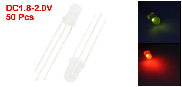 50 Pcs DC 1.8V-2.0V Common Anode Red Green F5 LED Light Emitting Diodes 5mm Dia