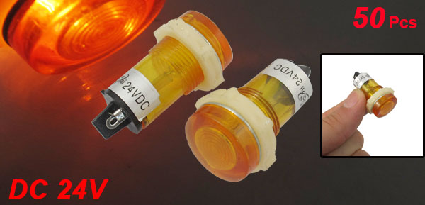 50 Pcs DC 24V 15mm Holing Flat Head Yellow Indicator Pilot Light Lamp XD15-1