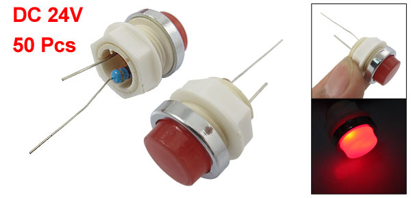 50 Pcs DC 24V 2 Pins 12mm Mount Hole Red Flat Head LED Indicator Pilot Light