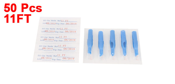 50 Pcs Disposable Tattoo Flat Tip Tube Nozzle 11FT Blue
