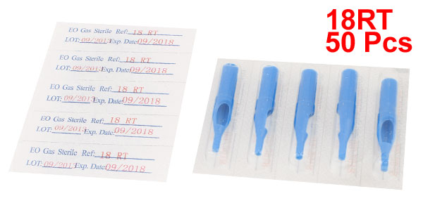 50 Pcs Disposable Tattoo Tip Tube Nozzle 18R Blue for Round Liner/Shader Needles