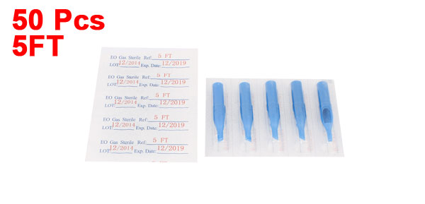 50 Pcs Disposable Tattoo Tip Tube Nozzle 5FT Blue for Flat/Magnum Shader Needles