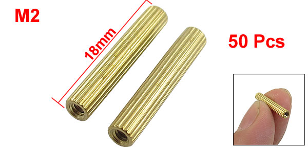 50 Pcs Female Threaded Pillars Brass Standoff Spacer Gold Tone M2x18mm