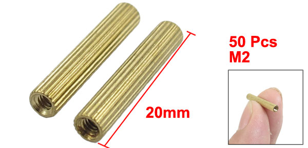 50 Pcs Female Threaded Pillars Brass Standoff Spacer Gold Tone M2x20mm