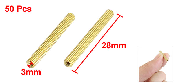 Product Name Brass Standoff Spacer Thread Size M2 Female Total Size(Approx.) 28 x 3mm/ 1.1" x 0.12" (L*Max.D) Material Brass Color Gold Tone Net Weight 56g Package Content 50 x Brass Standoff Spacer - Reviews
