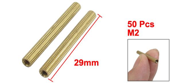 50 Pcs Female Threaded Pillars Brass Standoff Spacer Gold Tone M2x29mm