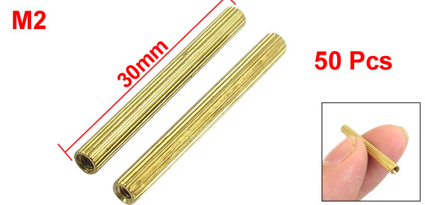 50 Pcs Female Threaded Pillars Brass Standoff Spacer Gold Tone M2x30mm