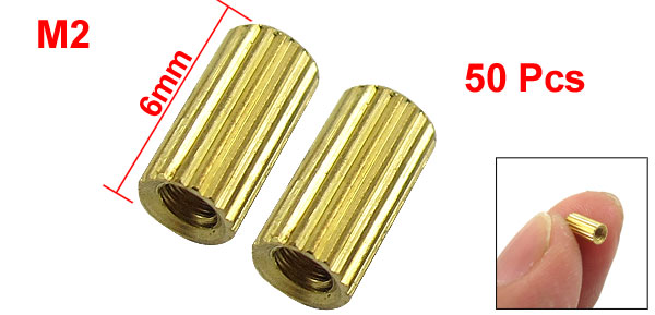 50 Pcs Female Threaded Pillars Brass Standoff Spacer Gold Tone M2x6mm