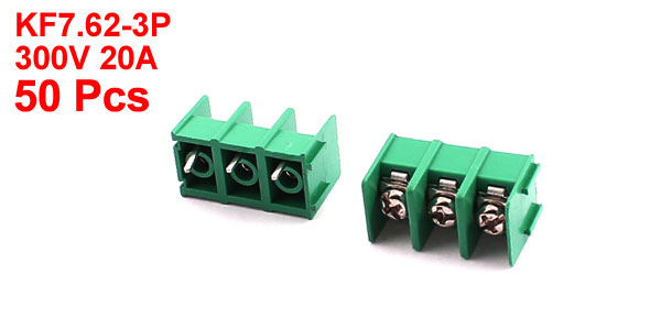50 Pcs KF7.62 3Position 3Pin 7.62mm Screw Terminal Barrier Blocks 300V 20A
