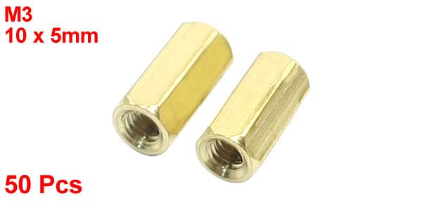 50 Pcs M3 x 10mm Female Thread Brass Pillar Hexagon Nut Standoff Spacer