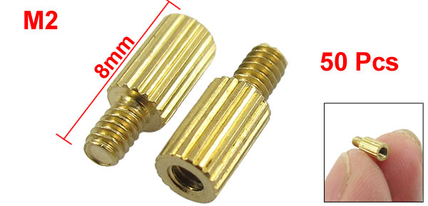 50 Pcs Male to Female Thread Brass Pillars Standoff Spacer M2x5mmx8mm