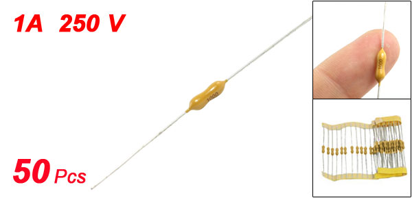 Product Name Pico Fuse Material Resin, Metal Blow out Voltage 250V Blow out Current 1A Mounting Type Through Hole Lead Style Axial Resin Part Size 10 x 3mm/ 0.39" x 0.12"(L*D) Each Lead Size 27 x 0.5mm / 1.06" x 0.02" (L*D) Total Length 74mm/ 2.9" Quantity 50 ± 2% Pcs Weight 15g Package 50 x Pico Fuse - Reviews