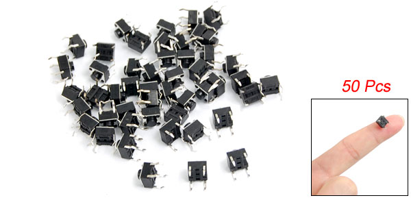 Product Name Micro Switch Type Momentary Contact Button Diameter 3mm/ 0.12" Dimension 6 x 6 x 8mm/ 0.23" x 0.23" x 0.31" (L*W*T) Material Plastic, Electric Parts Color Black, Silver Tone Net Weight 13g Package Content 50 x Micro Switch - Reviews