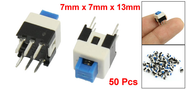 Product Name Push Button Switch Contact Type Momentary Dimension 7 x 7 x 13mm/ 0.28" x 0.28" x 0.51"(L*W*H) Pin Number 6 Material Plastic, Metal Color Blue, Black ,White Weight 21g Package Content 50 Pcs(±2%) x Push Button Switch - Reviews