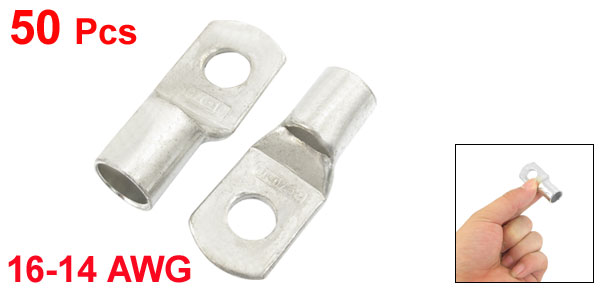 50 Pcs Non-insulated Ring Tongue Terminal Cable Lug for 16-14 AWG