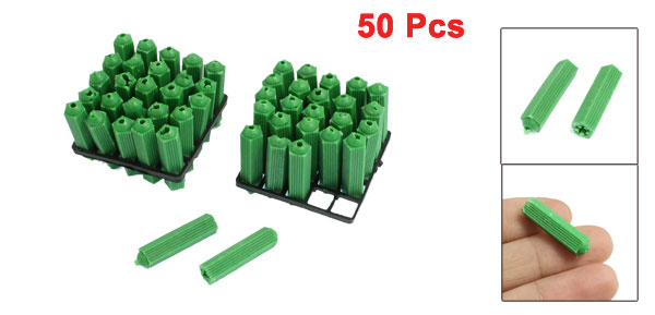 Product Name Plastic Wall Plug Color Green Size 6 x 26mm/ 0.24" x 1.02"(D*L) Material Plastic Weight 27g Package 50 x Plastic Wall Plug - Reviews
