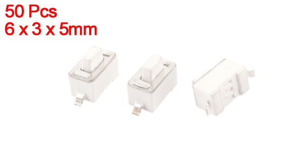 50 Pcs Panel PCB Momentary 2 Pin SPST Tactile Tact Switch White 6x3x5mm