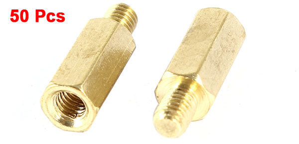 Product Name Standoff Hexagonal Spacer Thread Size M3 Male to Female 4mm+10mm Overall Size(Approx) 14 x 5mm / 0.55" x 0.2" (L*Max.D) Material Brass Color Gold Tone Net Weight 99g Package Content 50 x Standoff Hexagonal Spacer - Reviews