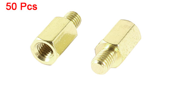 Product Name Standoff Hexagonal Spacer Thread Size M3 Male to Female 4mm+7mm Overall Size(Approx) 11 x 5mm / 0.4" x 0.2" (L*Max.D) Material Brass Color Gold Tone Net Weight 49g Package Content 50 Pcs x Standoff Hexagonal Spacer - Reviews