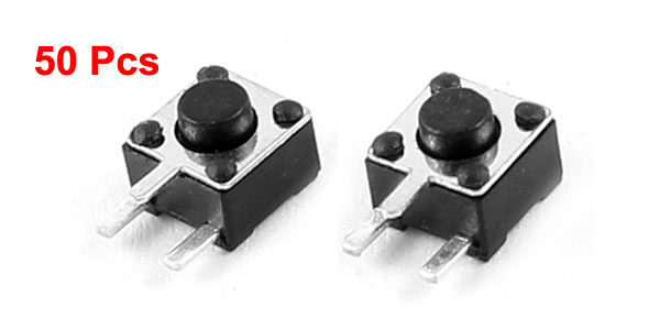 Product Name Tact Switch Type SPST Action Type Momentary Dimension 4.5 x 4.5 x 3.8mm / 0.18" x 0.18" x 0.15"(L*W*H) Button Dia 2mm / 0.08" Pin Length 1.5mm/0.06" Pin Spacing 3 x 2.5mm/0.12" x 0.1"(L*W) Material Plastic, Metal, Electric Parts Color Black, Silver Tone Net Weight 7g Package Content 50(±2%) x Tact Switch - Reviews