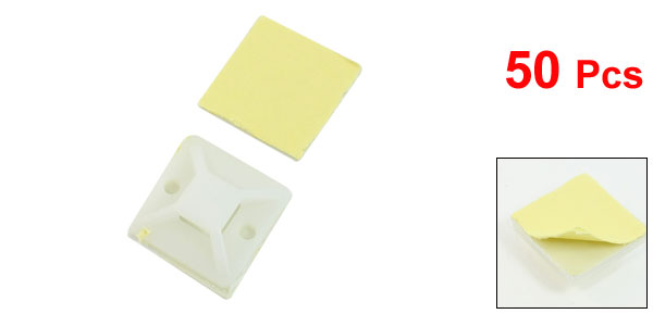 50 Pcs Plastic White 2mm Width Hole Self-adhesive Cable Tie Mount Base