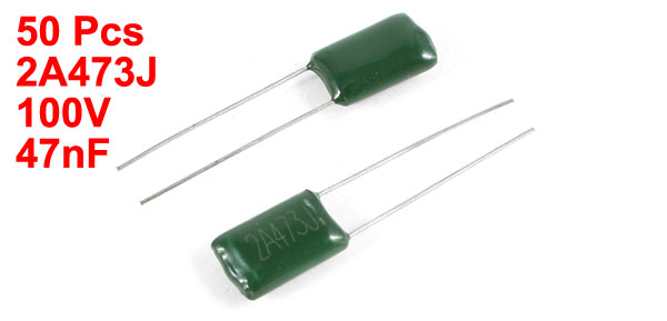 50 Pcs Radial Leads Polyester Film Cap Capacitors Green 2A473J 100V 47nF 5%